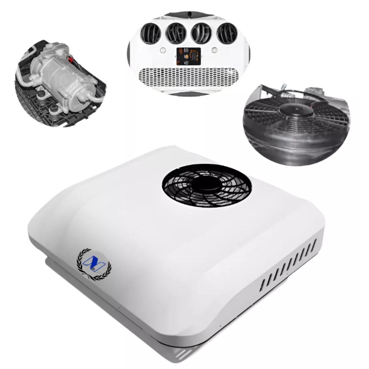 O kit de ar Condicionado 100% ELÉTRICO modelo de teto é perfeito para vans, motorhomes, trailers, caminhões, máquina agrícola, máquinas de terraplanagem e maquinas de construção, conhecida como linha amarela.
